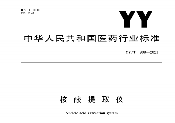 近日,國內首個核酸提取設備醫藥行業標準《核酸提取儀(YY/T1908-2023)》(下稱《標準》)由國家藥監局發布。《標準》由北京市醫療器械檢驗研究院牽頭,聯合天隆科技、中國食品藥品檢定研究院、北京協和醫院、北京天壇醫院等單位共同制定,是天隆繼2017年牽頭制定《核酸提取試劑盒(磁珠法)(YY/T1717-2020)》行業標準后參與起草的又一重要規范。