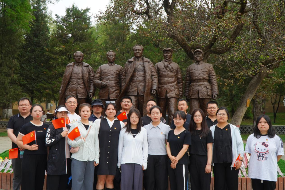 在五大書記銅像廣場,黨支部舉行了獻禮英烈儀式。支部委員吉蕊為大家講述了革命先烈朱德的故事,全體黨員肅立、默哀,向偉大的無產階級革命家依次獻花,并行鞠躬禮。在張思德烈士紀念廣場,全體黨員認真聆聽了他的故事,集體朗誦文章《為人民服務》,在朗讀中重溫、傳承張思德精神。隨后,在支部書記袁瑩的帶領下,全體黨員重溫了入黨誓詞,一聲聲宣誓鏗鏘有力,更加堅定了為共產主義奮斗的決心。