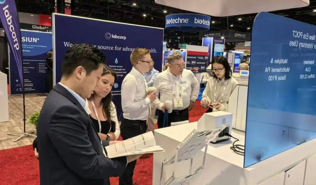 與此同時,科華生物帶來了其全新推出的V150全自動化學發(fā)光免疫分析儀。V150以其高精度、高穩(wěn)定性和全自動化操作優(yōu)勢,成為免疫分析領(lǐng)域的一項重磅產(chǎn)品。該設(shè)備適配多種試劑,靈巧而精準,同時突破臨床科室場地局限,充分滿足多種應(yīng)用場景。展會期間,V150吸引了眾多客戶的目光,充分展示了科華生物在免疫分析領(lǐng)域的技術(shù)實力。本次展會天隆科技及科華生物展示了其最新研發(fā)成果,涵蓋分子、生化、免疫以及POCT等多個領(lǐng)域的產(chǎn)品和解決方案,吸引了來自全球的廣泛關(guān)注,其中就包括大量來自美洲的客戶。展位現(xiàn)場人潮涌動,氣氛熱烈。美洲市場客戶對天隆和科華的新產(chǎn)品表現(xiàn)出了濃厚的興趣,尤其關(guān)注其在各類檢測場景中的應(yīng)用潛力。除了拓展新客戶之外,天隆科技與科華生物還利用此次展會契機,與多家老客戶進行了面對面的深入交流,加深了公司對當前市場需求的理解,也為未來產(chǎn)品的開發(fā)和市場拓展奠定了堅實基礎(chǔ)。
